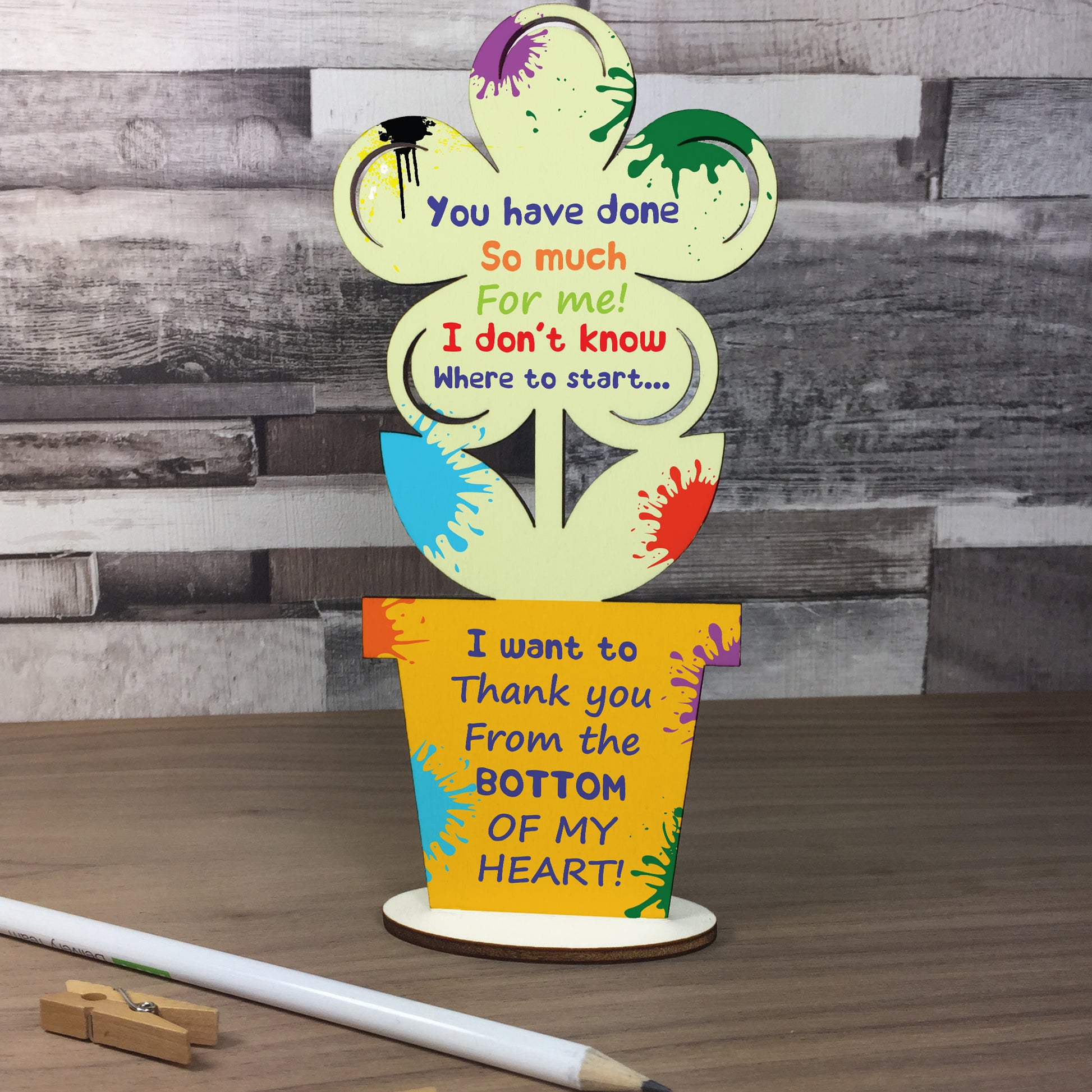 A beautiful wooden freestanding flower printed with a heartfelt thank