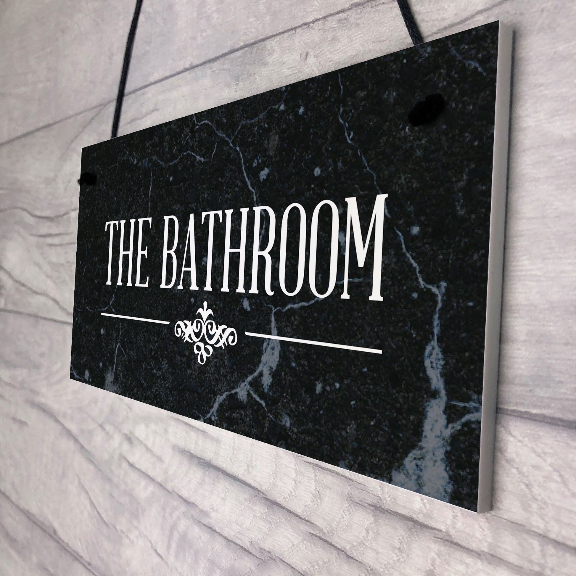 The Bathroom Hanging Sign Bathroom Toilet Decor Marble Theme