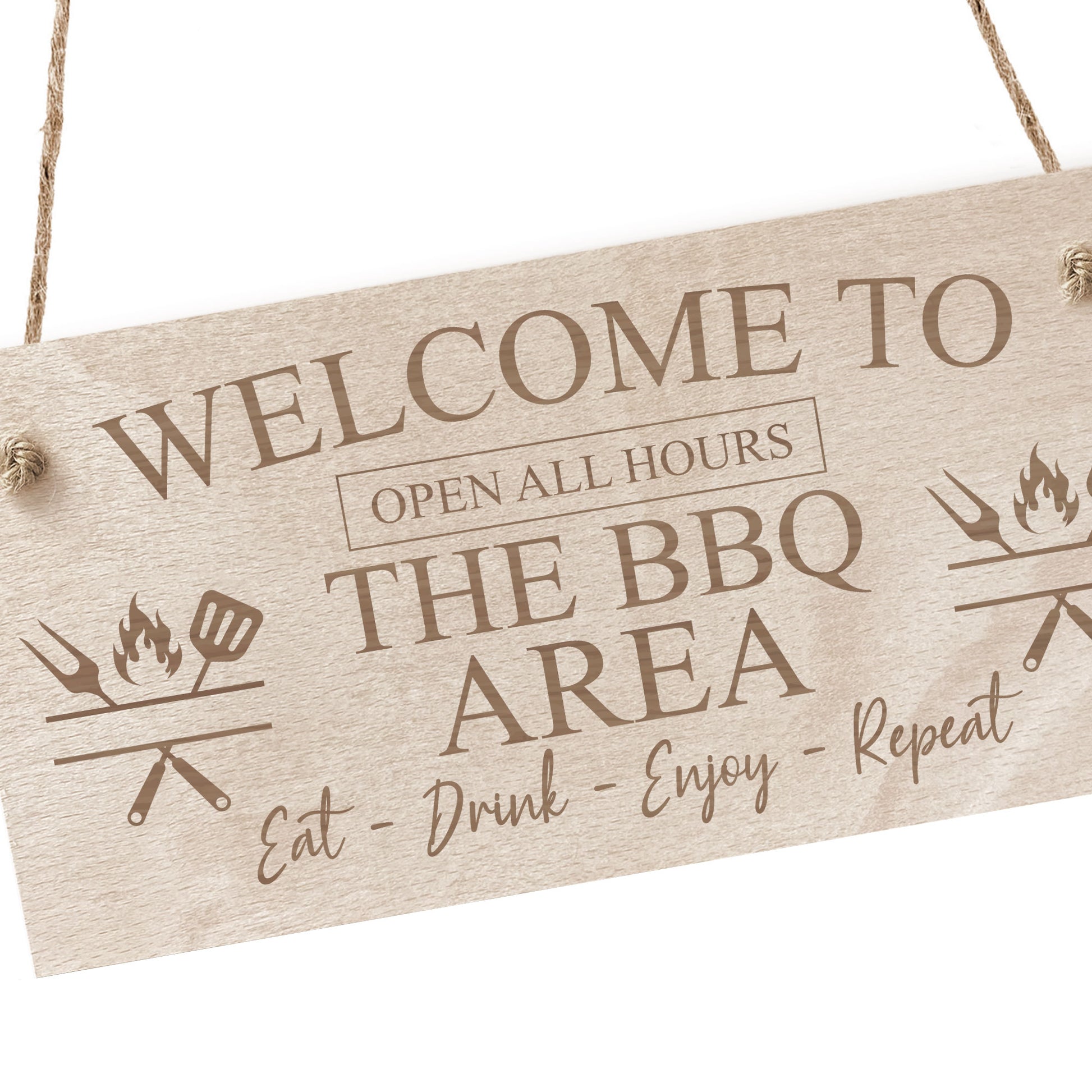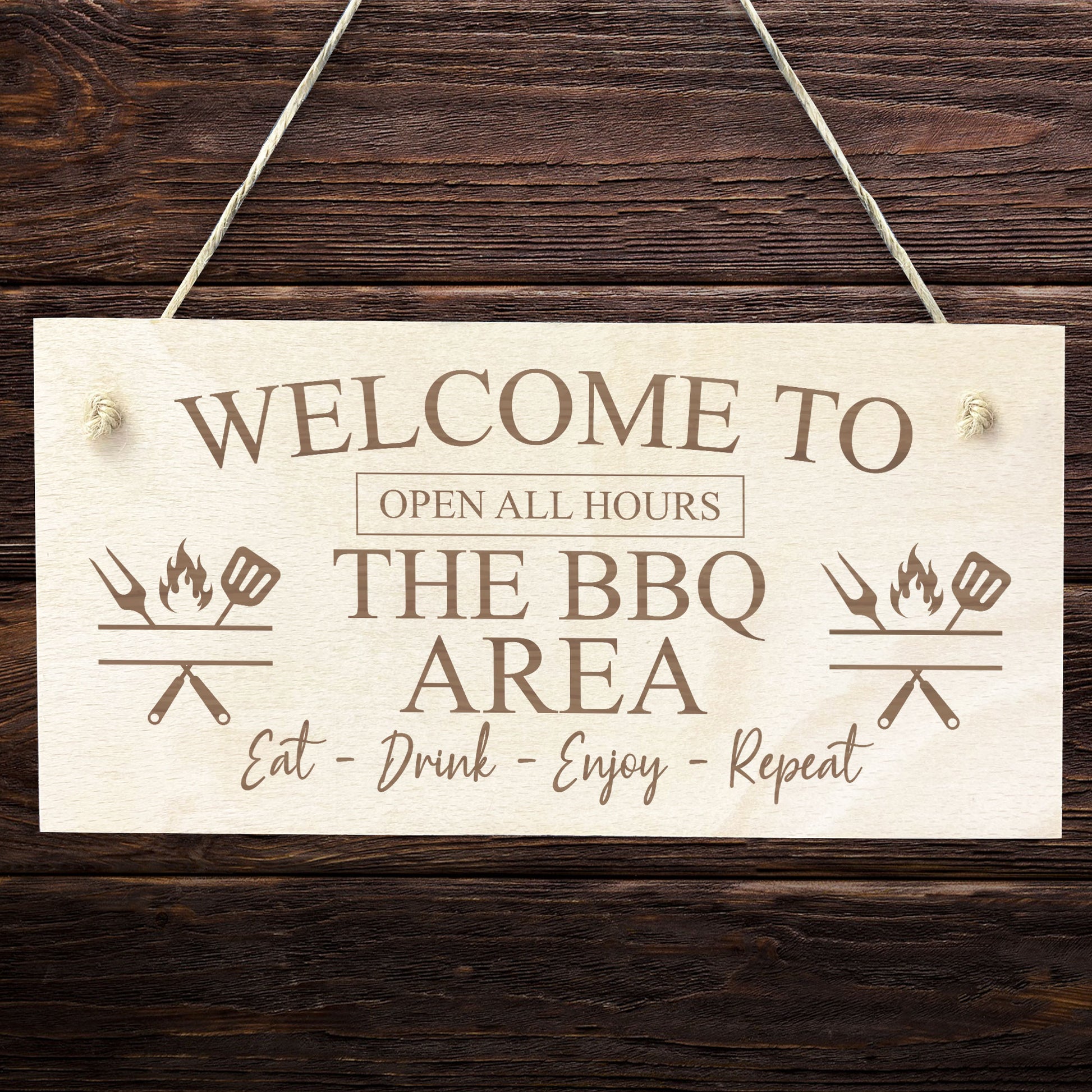 THE BBQ AREA Engraved Hanging Garden Shed Sign BBQ Sign