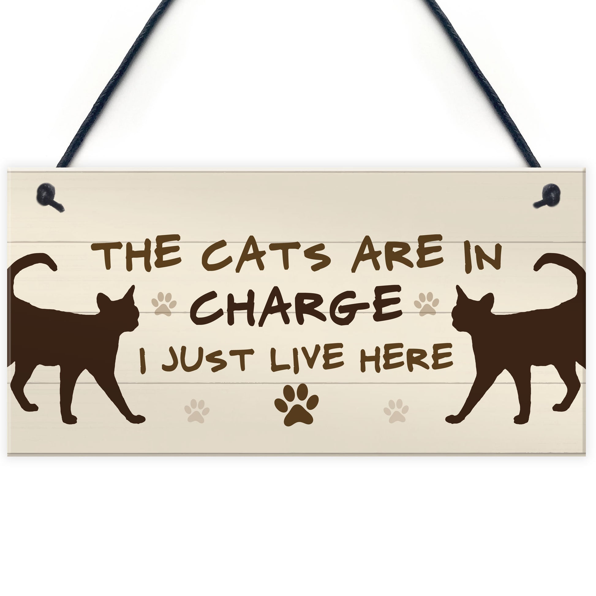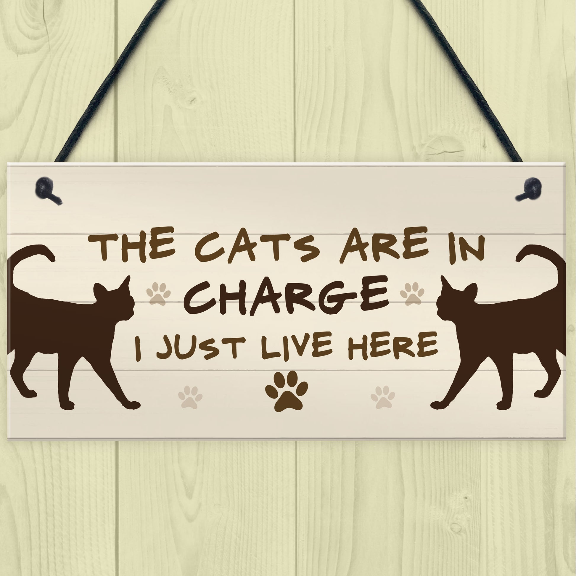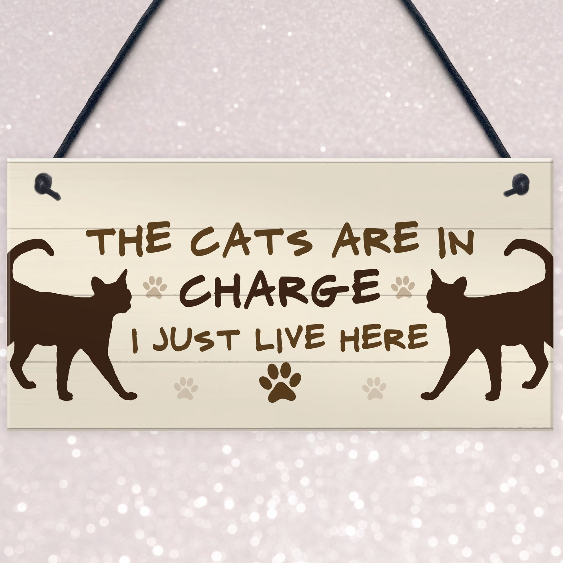 The Cats Are In Charge Hanging Sign Funny Cat Gift Home Decor