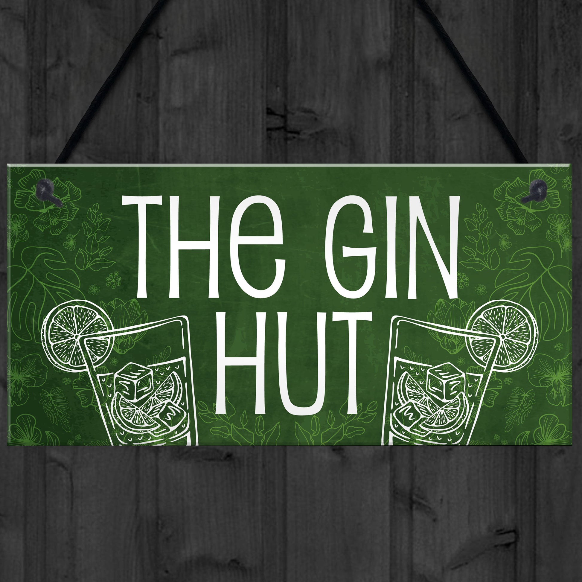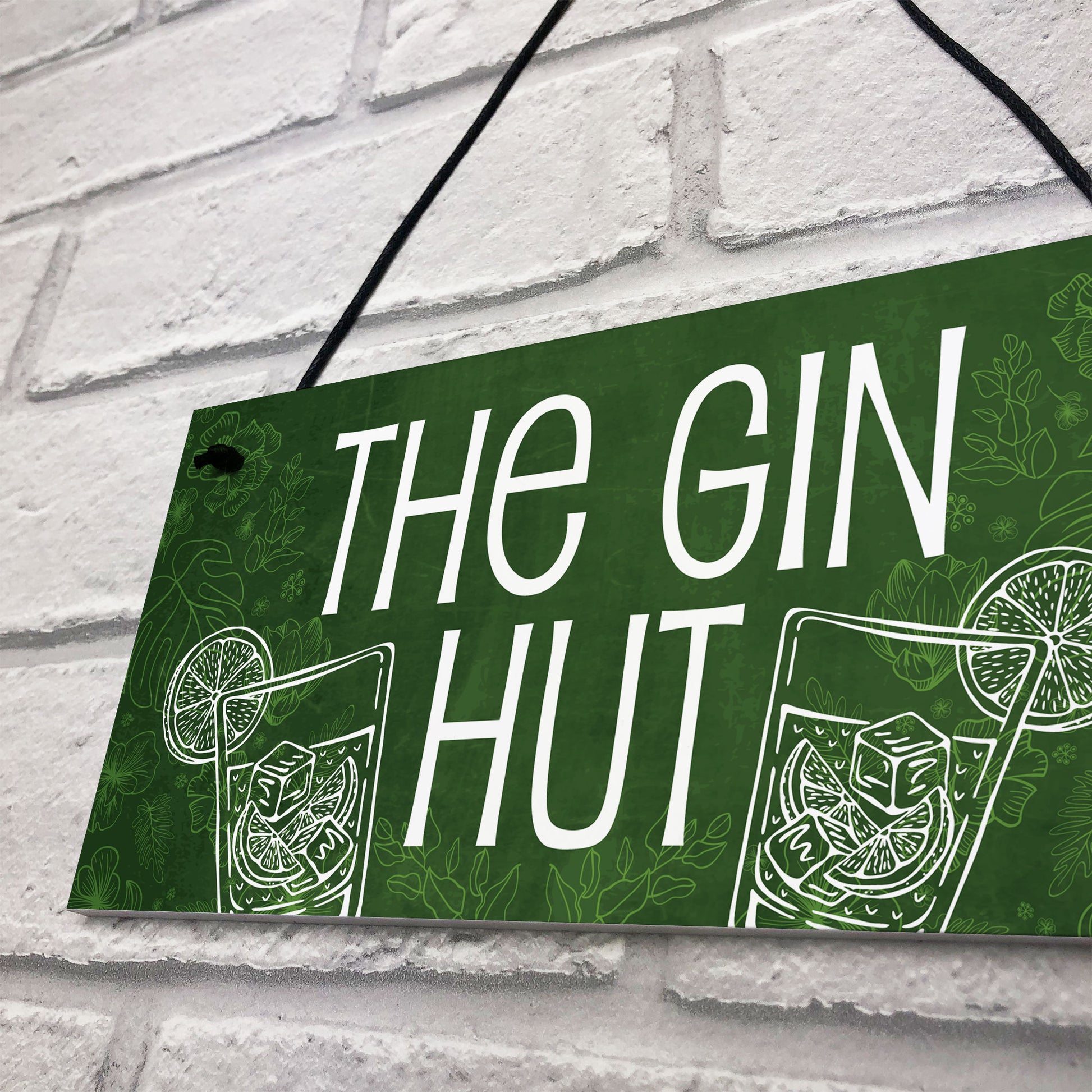 The Gin Hut Funny Home Bar Hanging Sign Garden Man Cave Gifts
