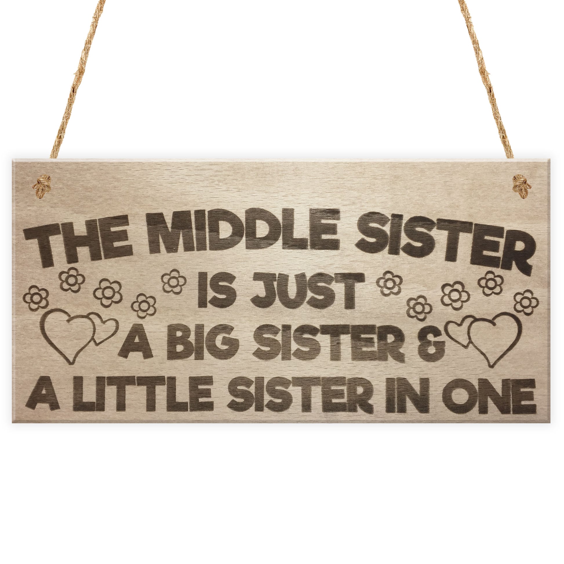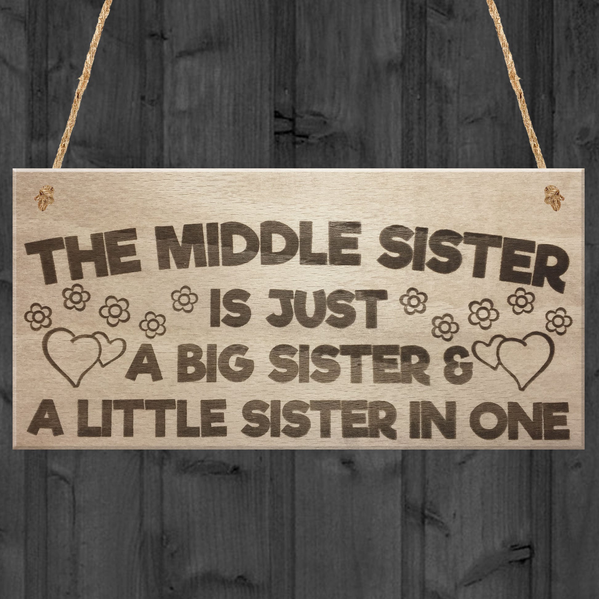 The Middle Sister Big & Little Hanging Wooden Plaque Sign Gift