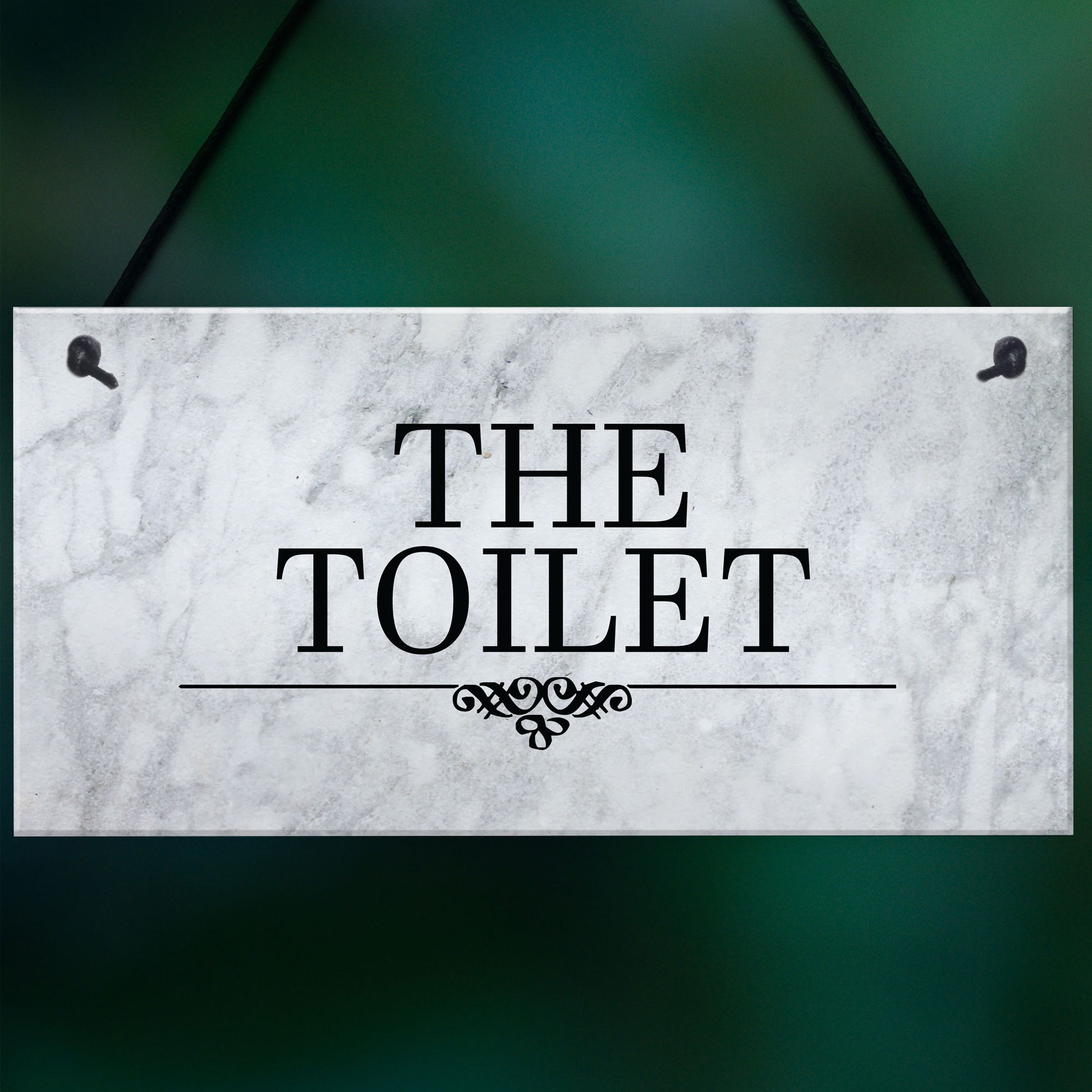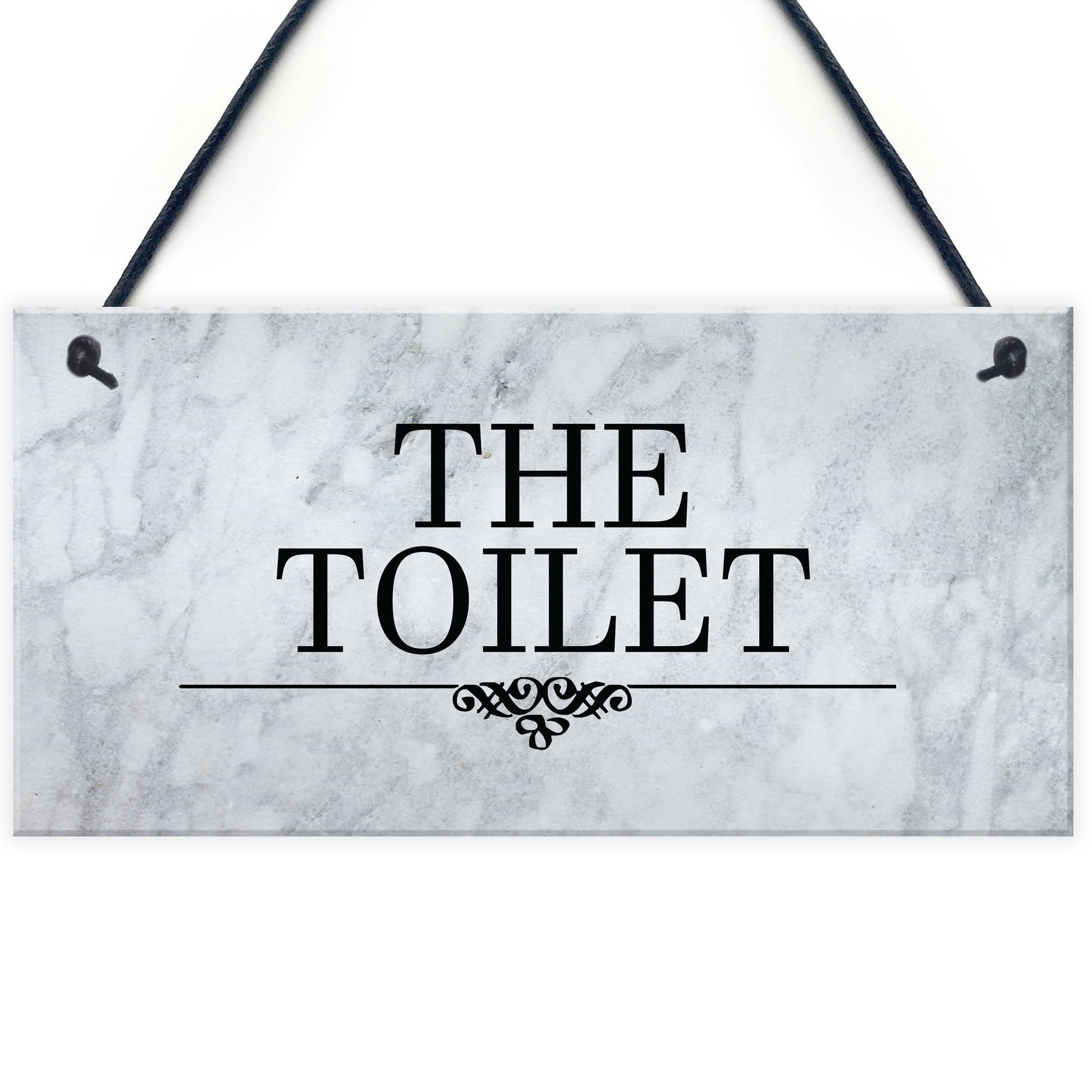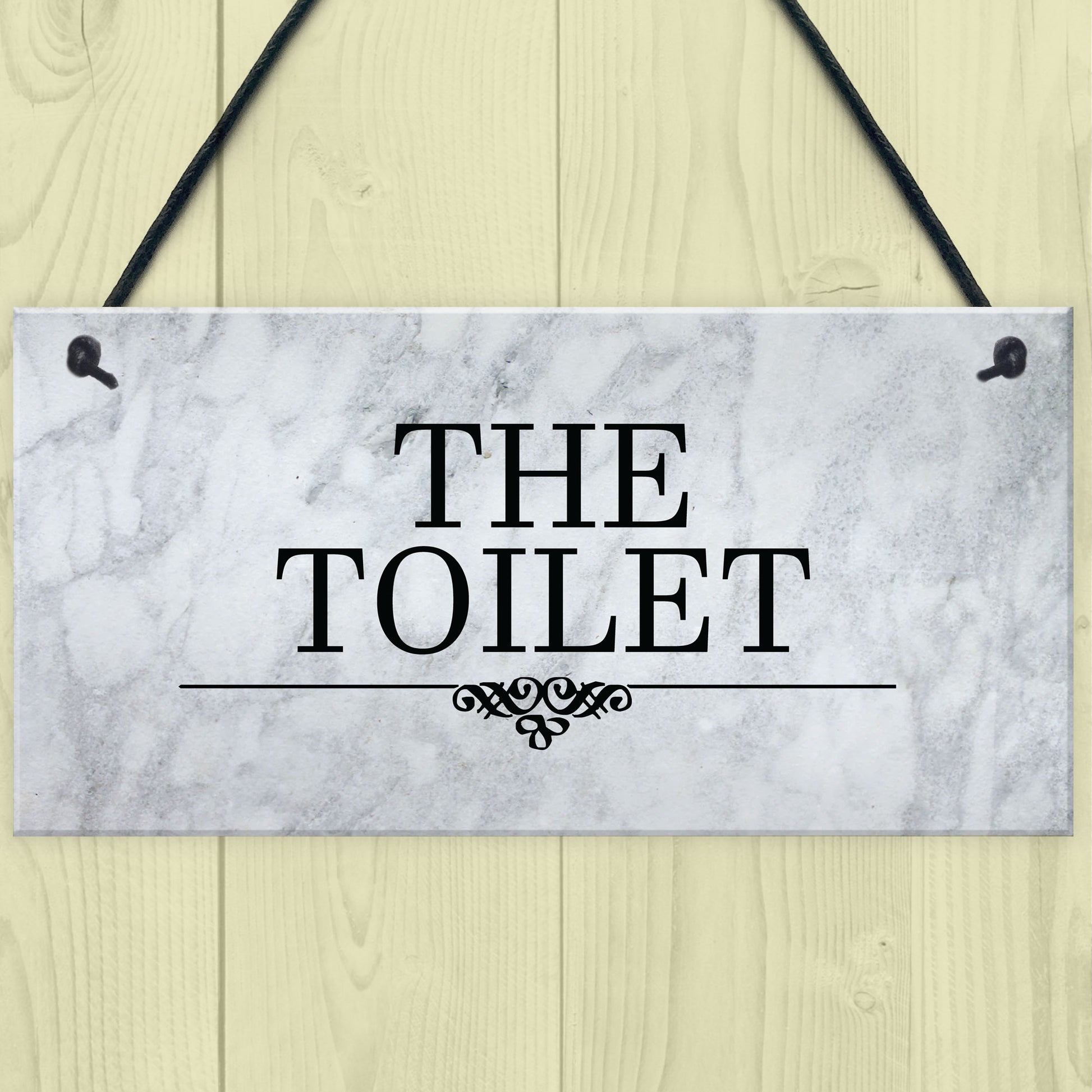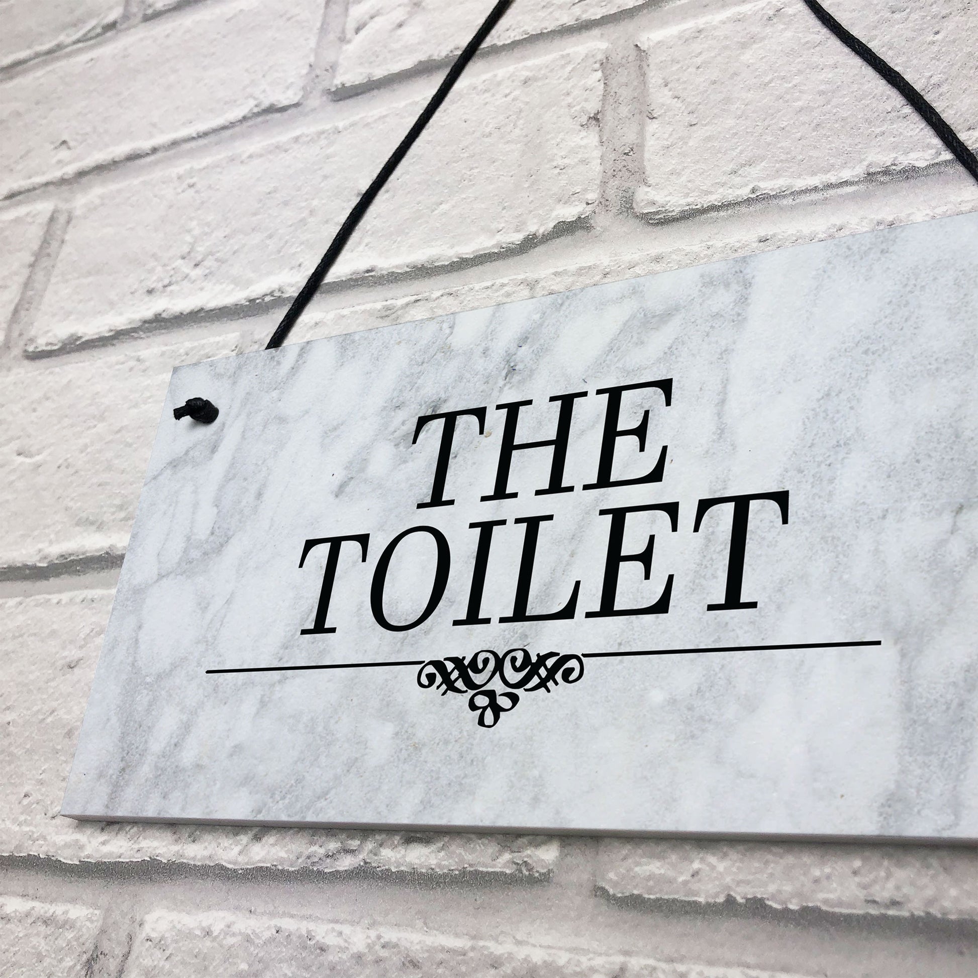 The Toilet Sign Marble Theme Hanging Bathroom Toilet Loo Sign