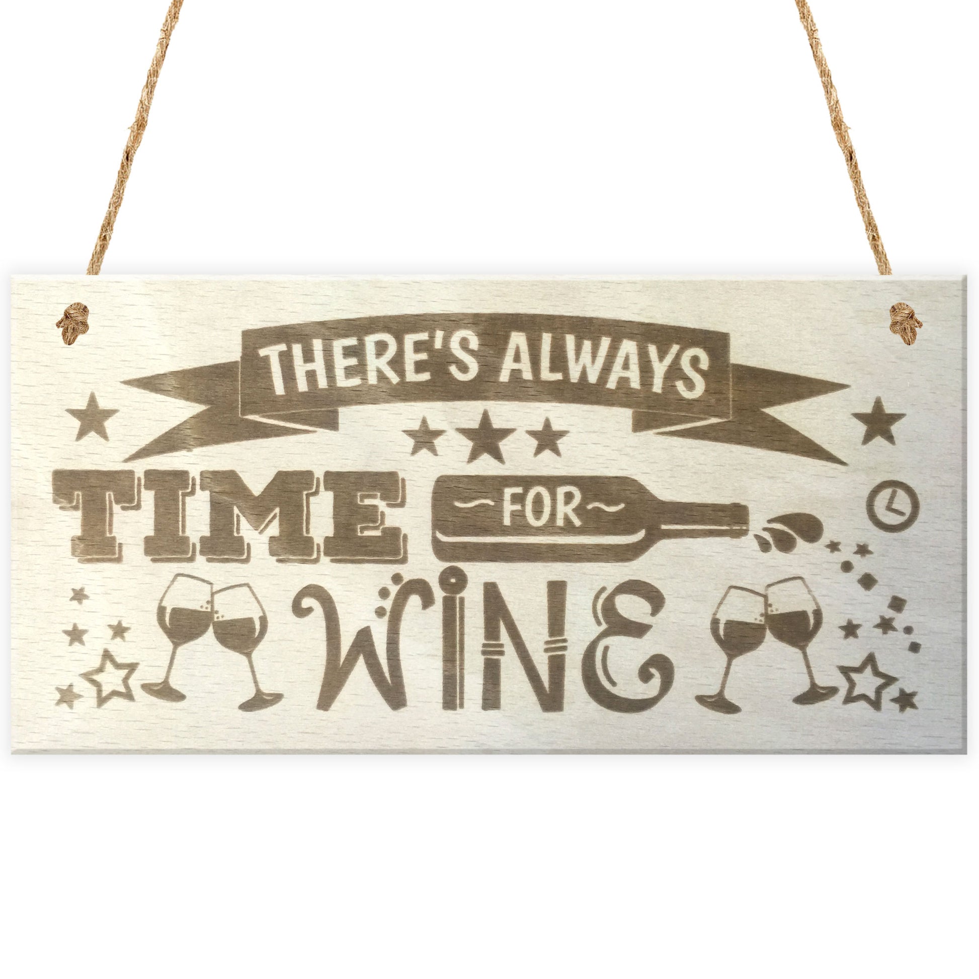 There's Always Time For Wine Novelty Wooden Hanging Plaque