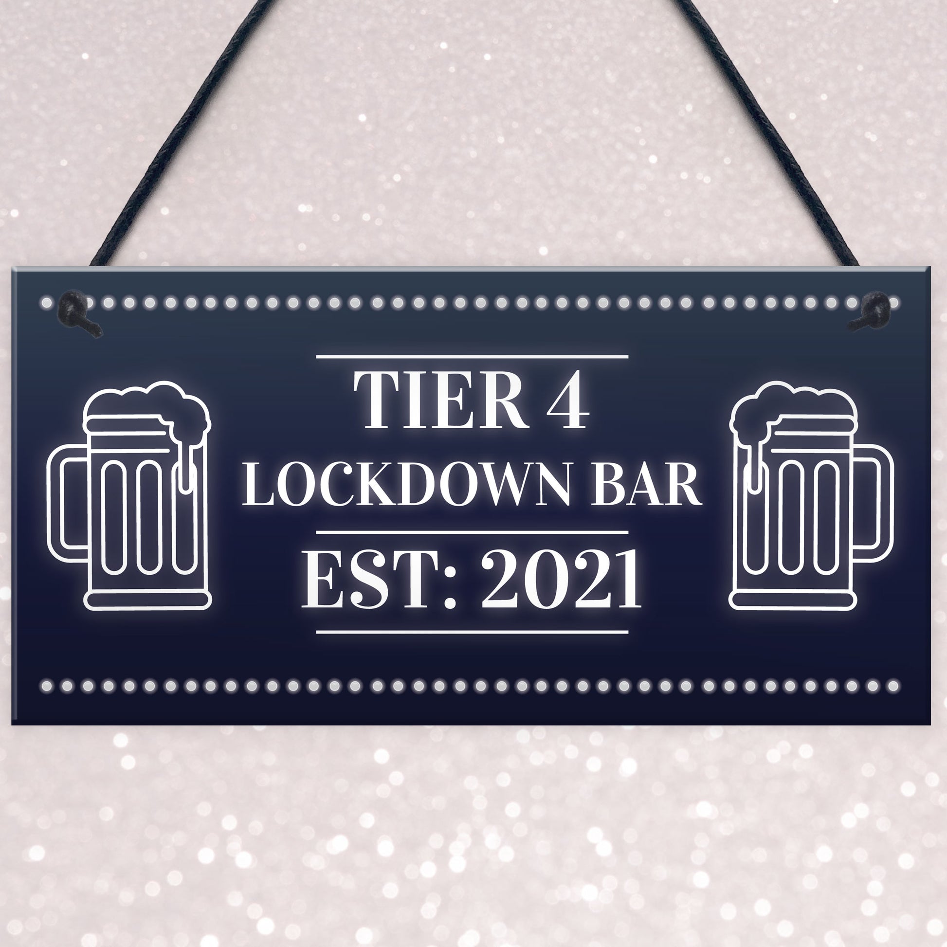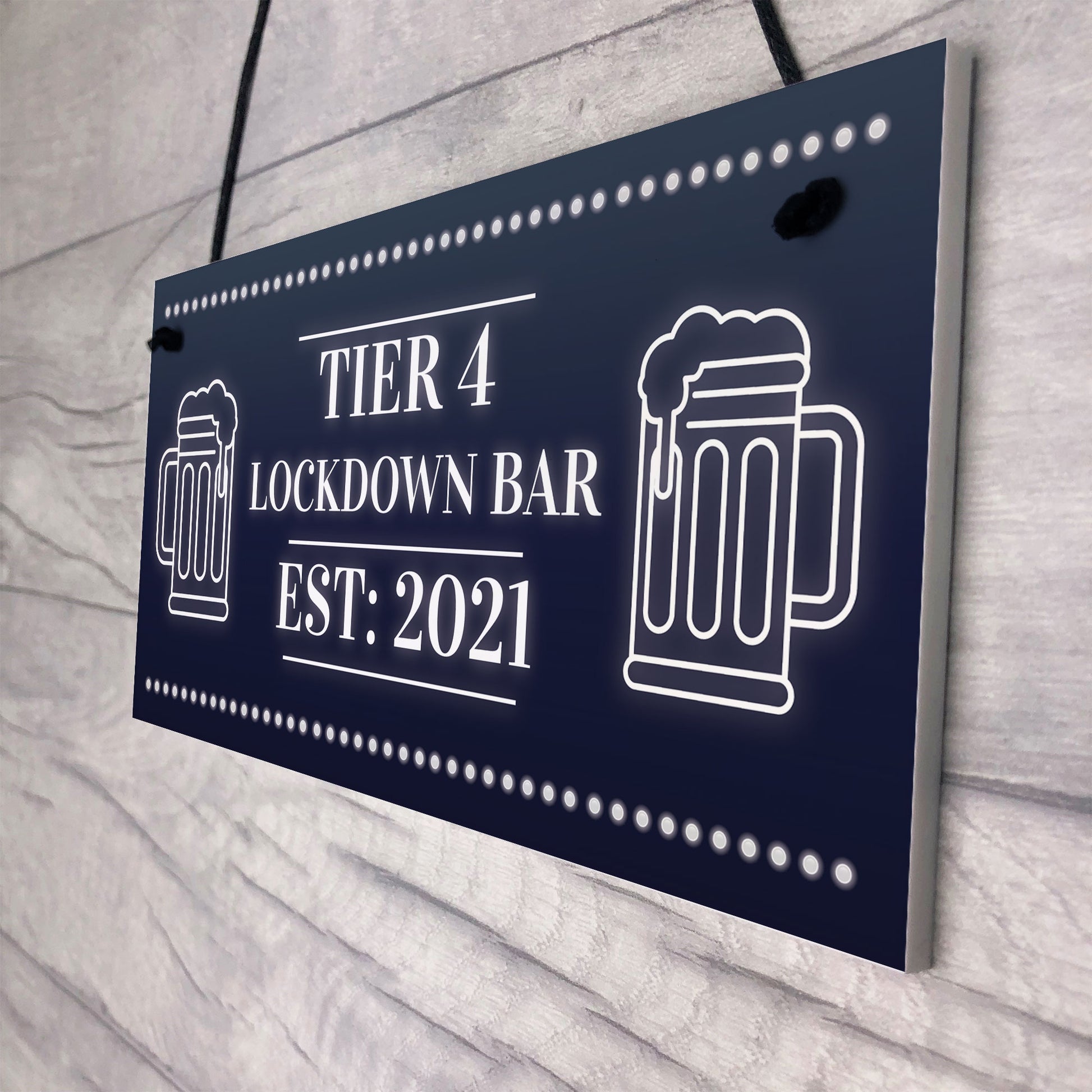 TIER 4 Lockdown Bar Sign HOME BAR Man Cave Bar Pub Plaque