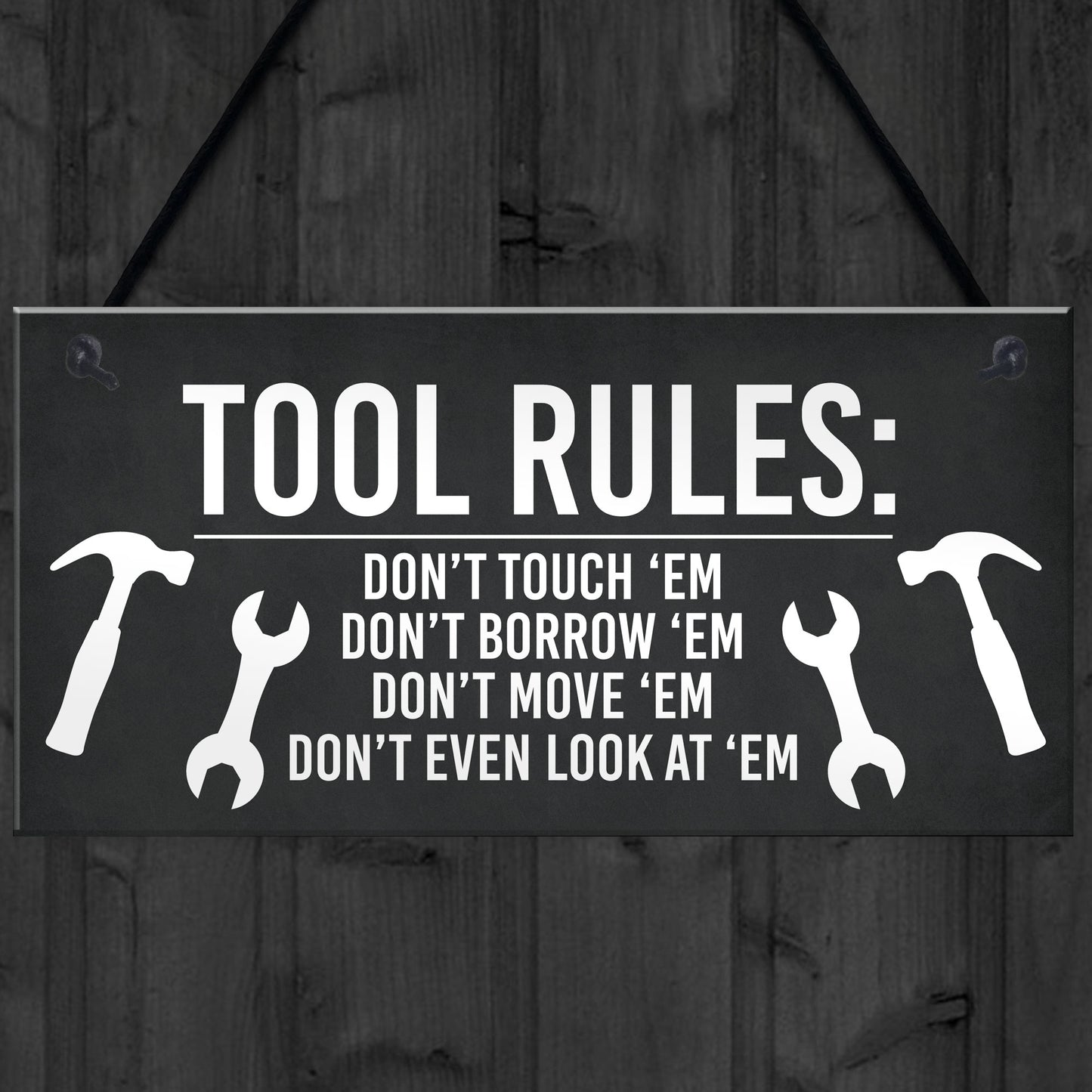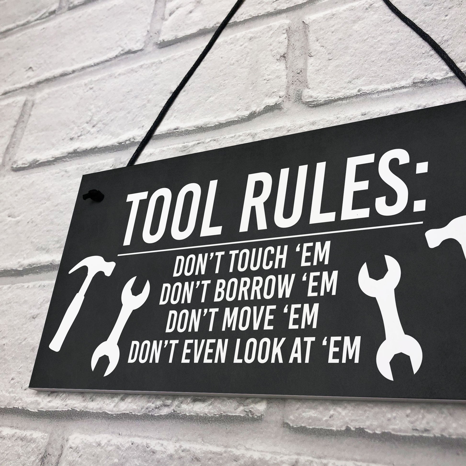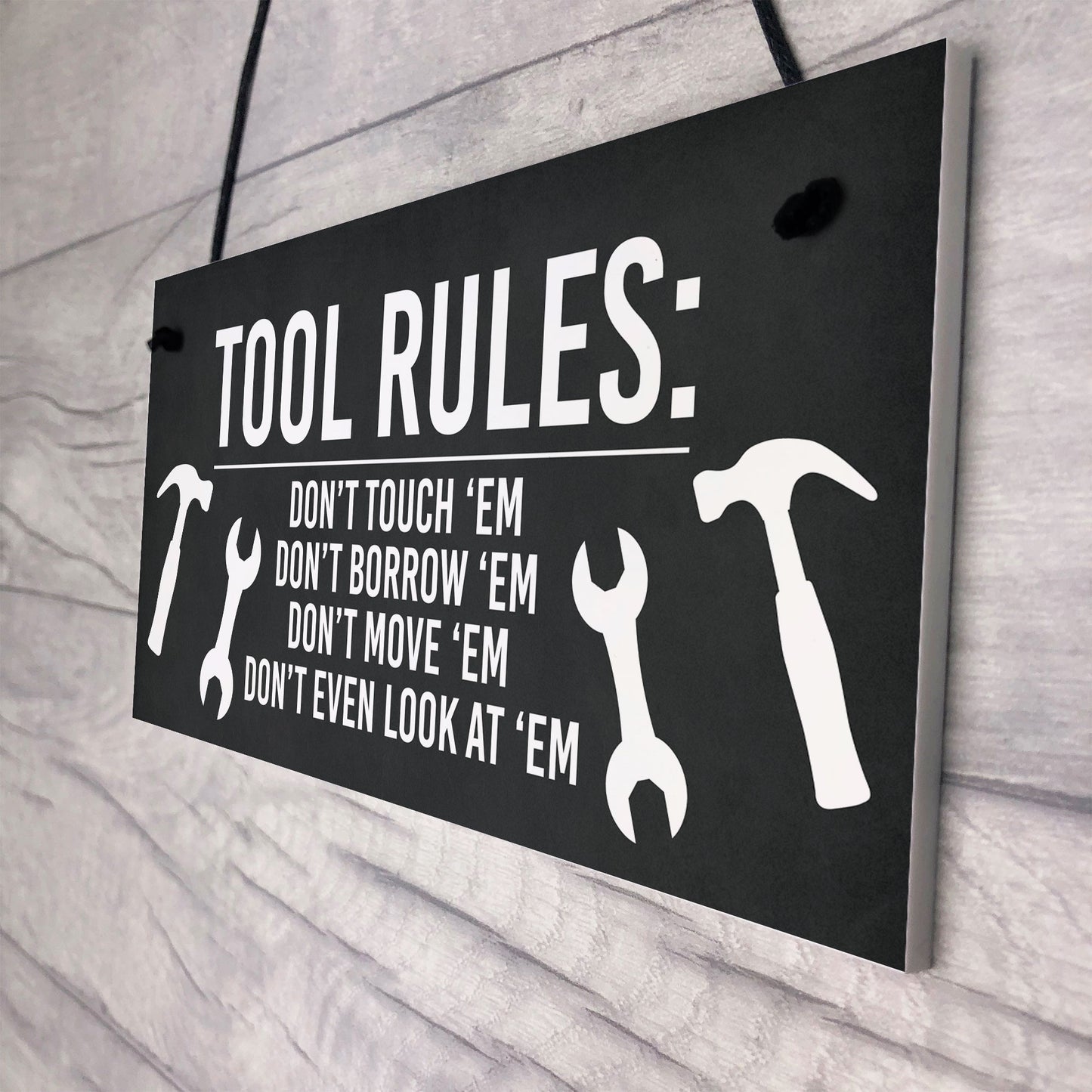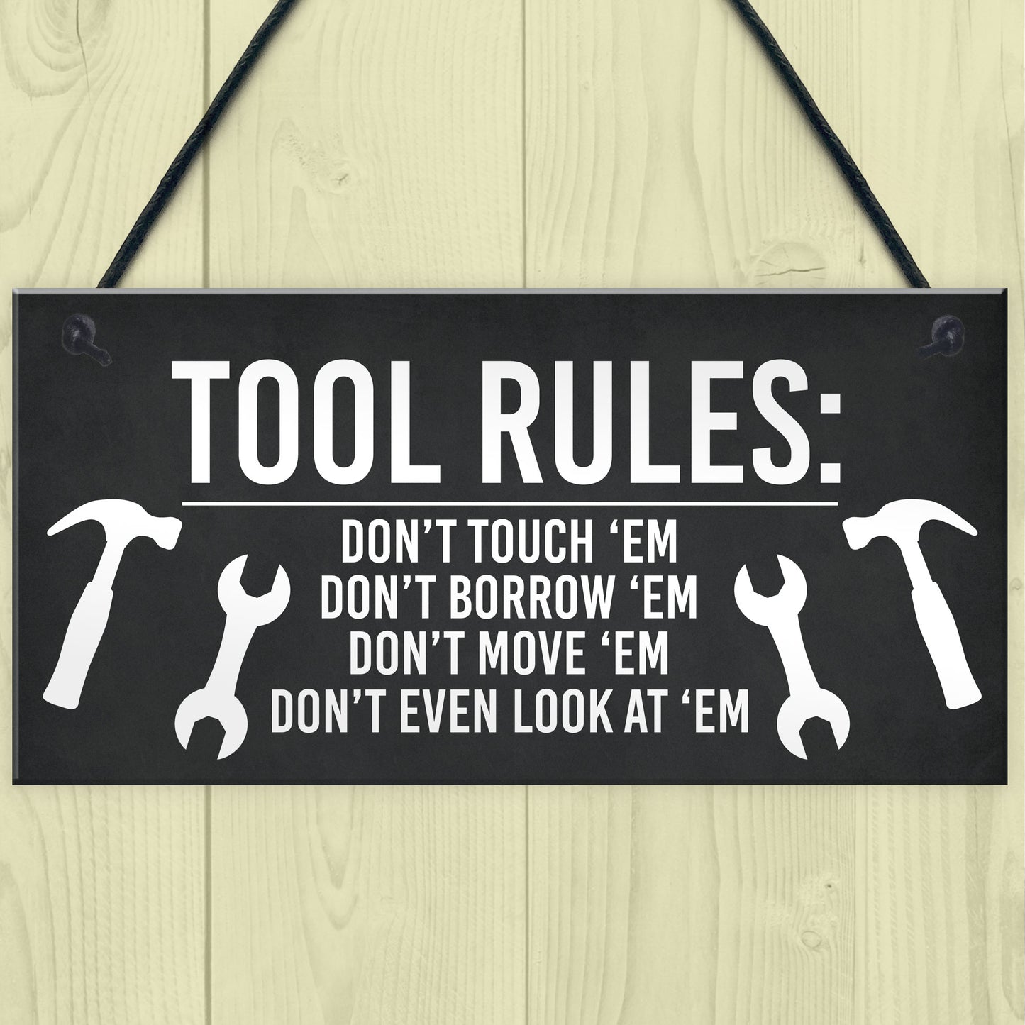 TOOL RULES Sign Man Cave Shed Garage Sign Funny Gift For Men