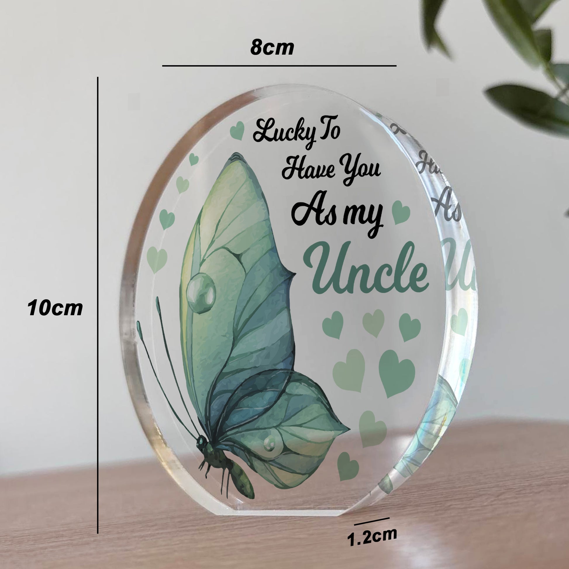 Introducing our exquisitely crafted Acrylic Circle Keepsake, a charming piece designed to brighten any space and touch the hearts of its recipients. This versatile circular plaque, measuring 10 cm in diameter and 1.2 cm in thickness, is both sturdy and stylish, the perfect addition to shelves, mantels, or desks. Each plaque is printed with vivid, long lasting colours that bring warmth to any room, creating not only a decorative piece but a lasting reminder of love, friendship, or encouragement.
