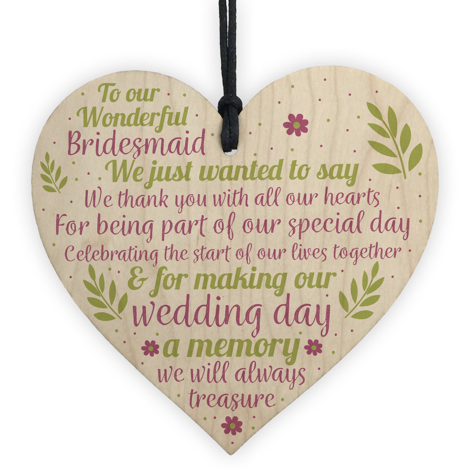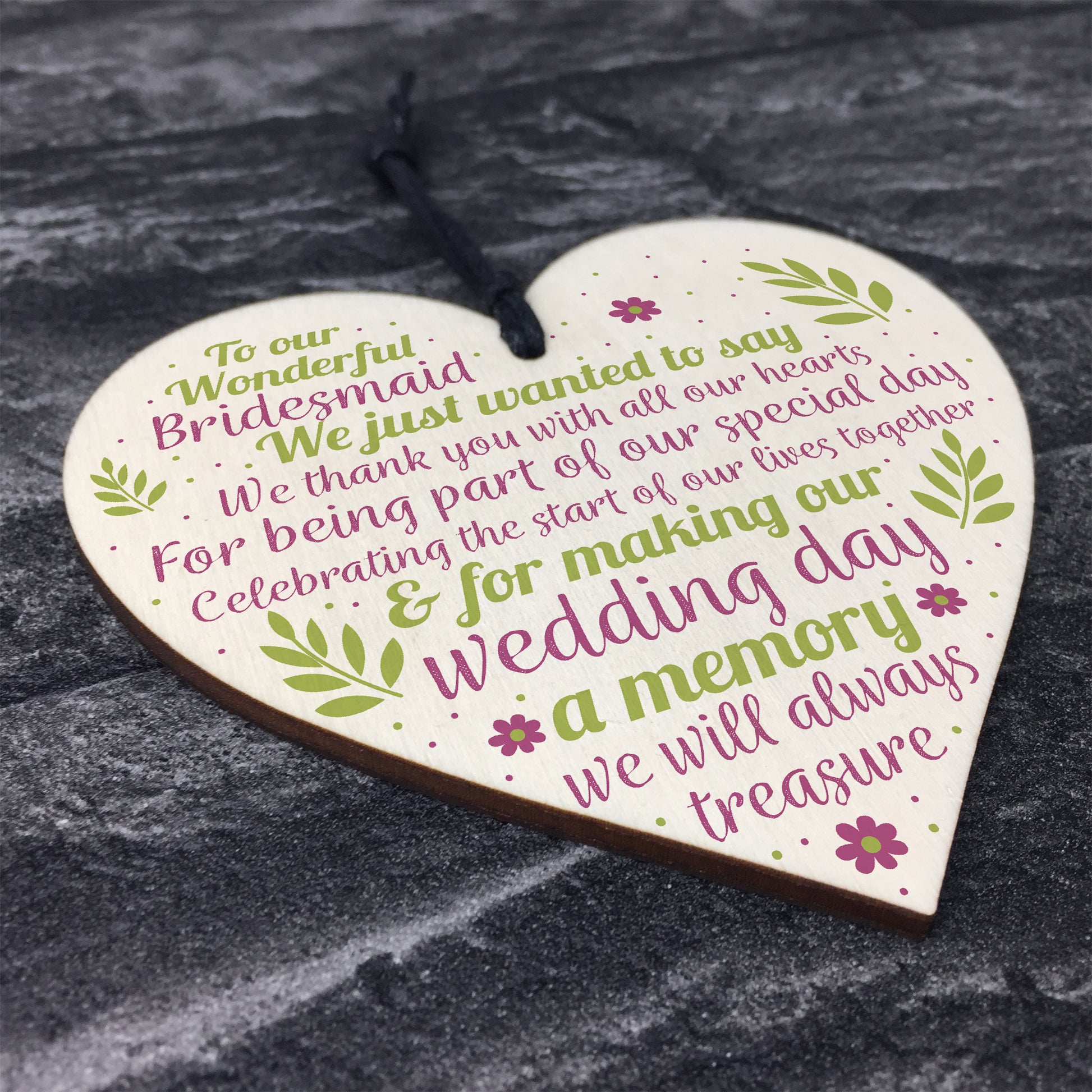 This gorgeous wooden heart plaque printed with this beautifu, thank you message would make a lovely thank you wedding favour gift for your Bridesmaids this year. Give this gift with love and put a smile on your friend's face every time as soon as they read it.