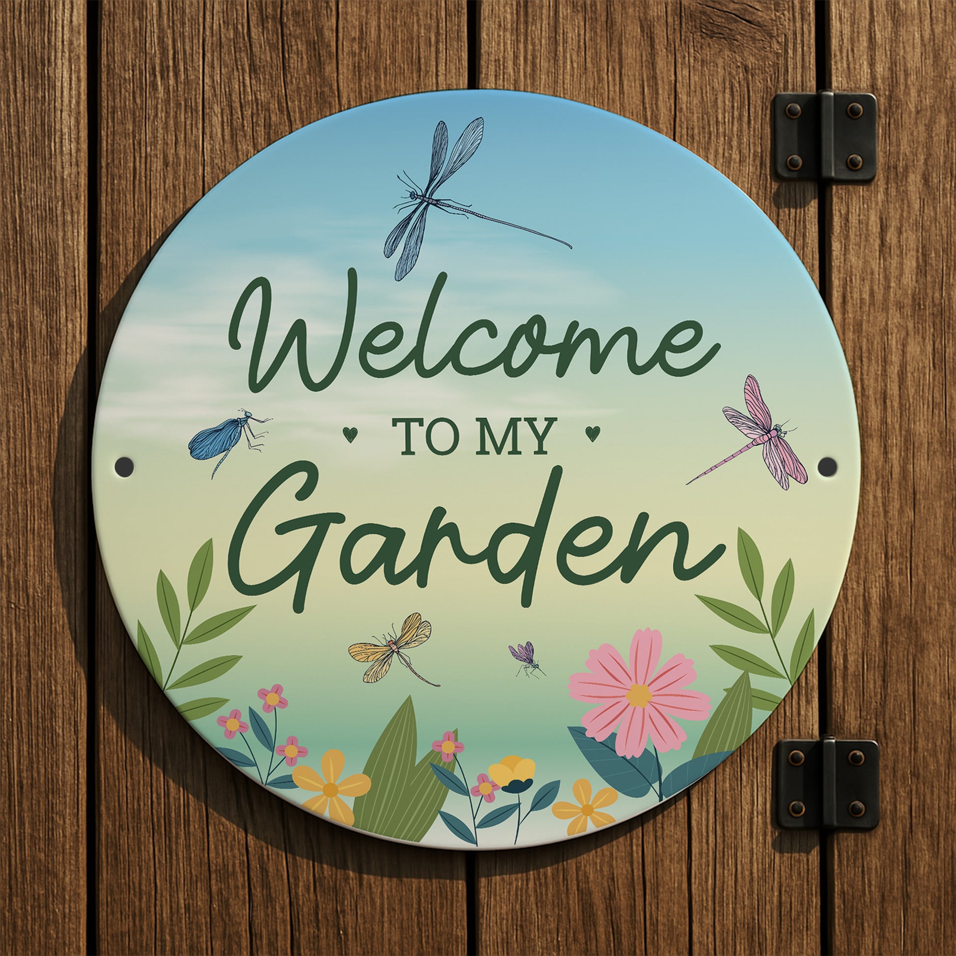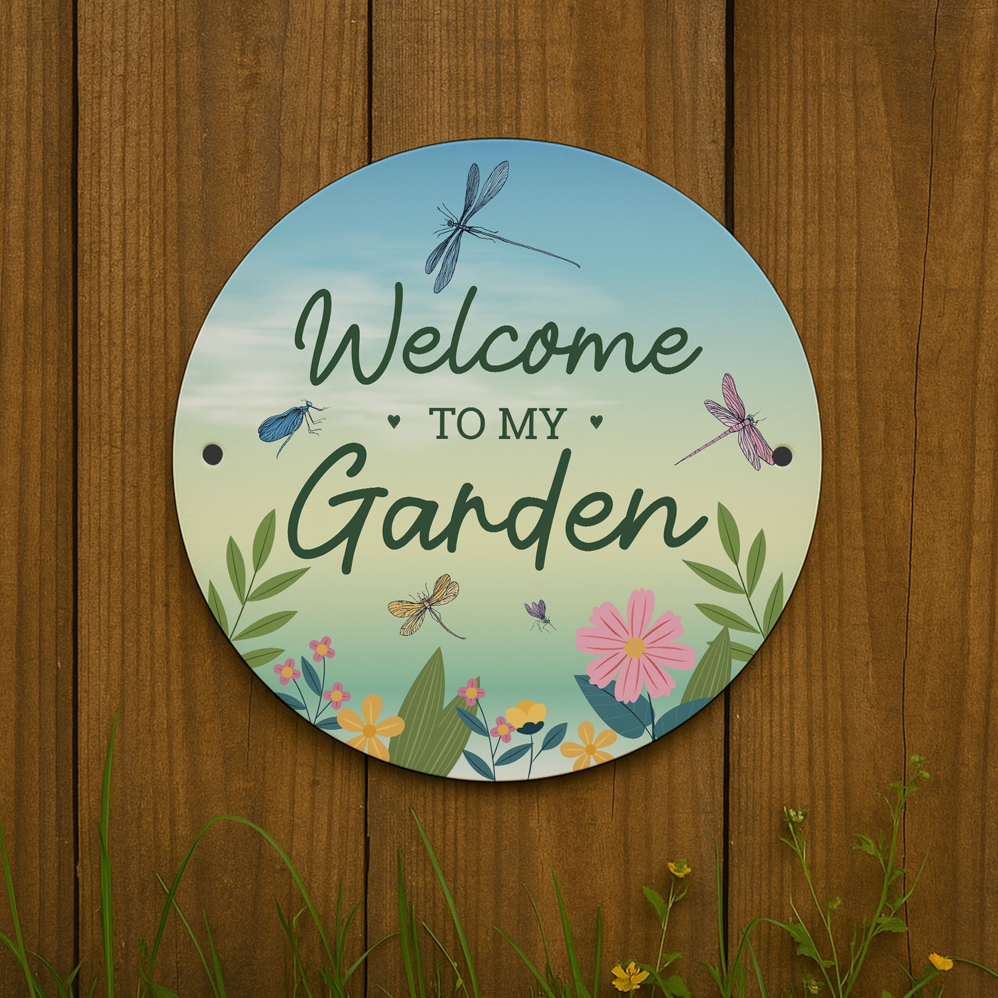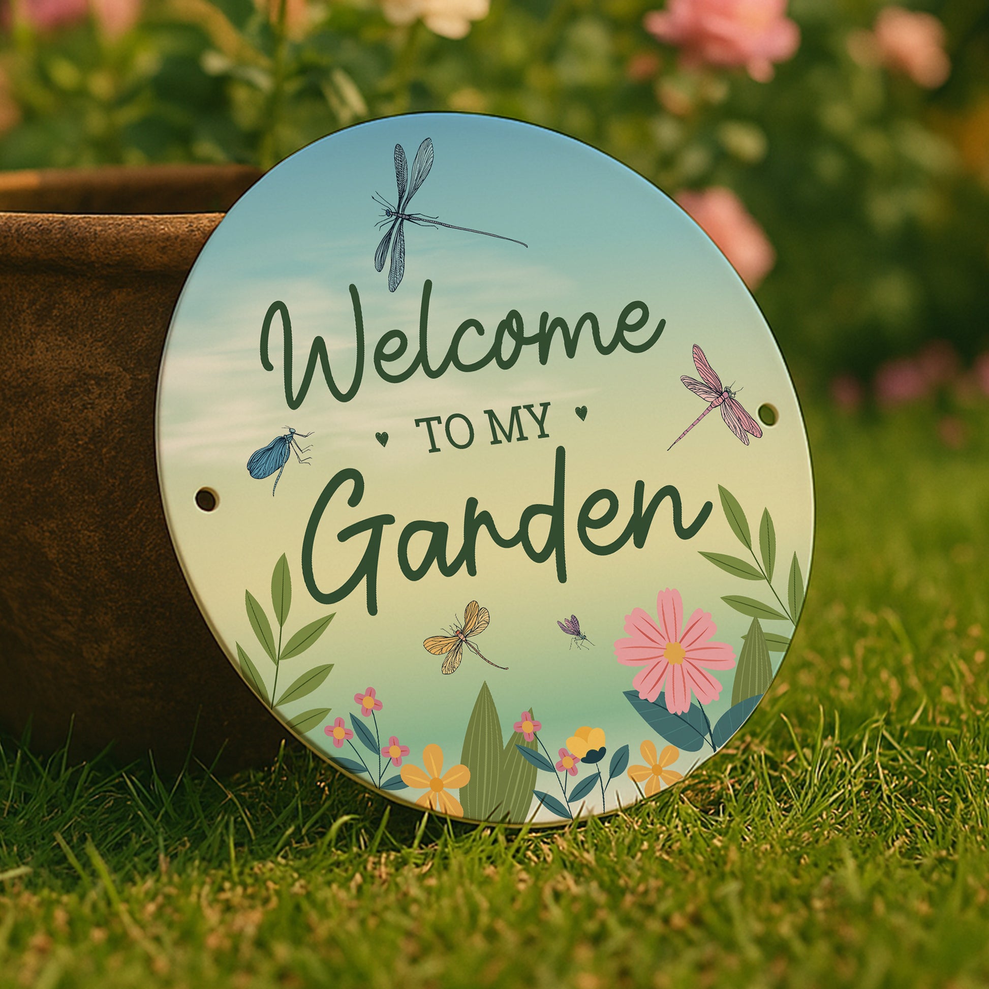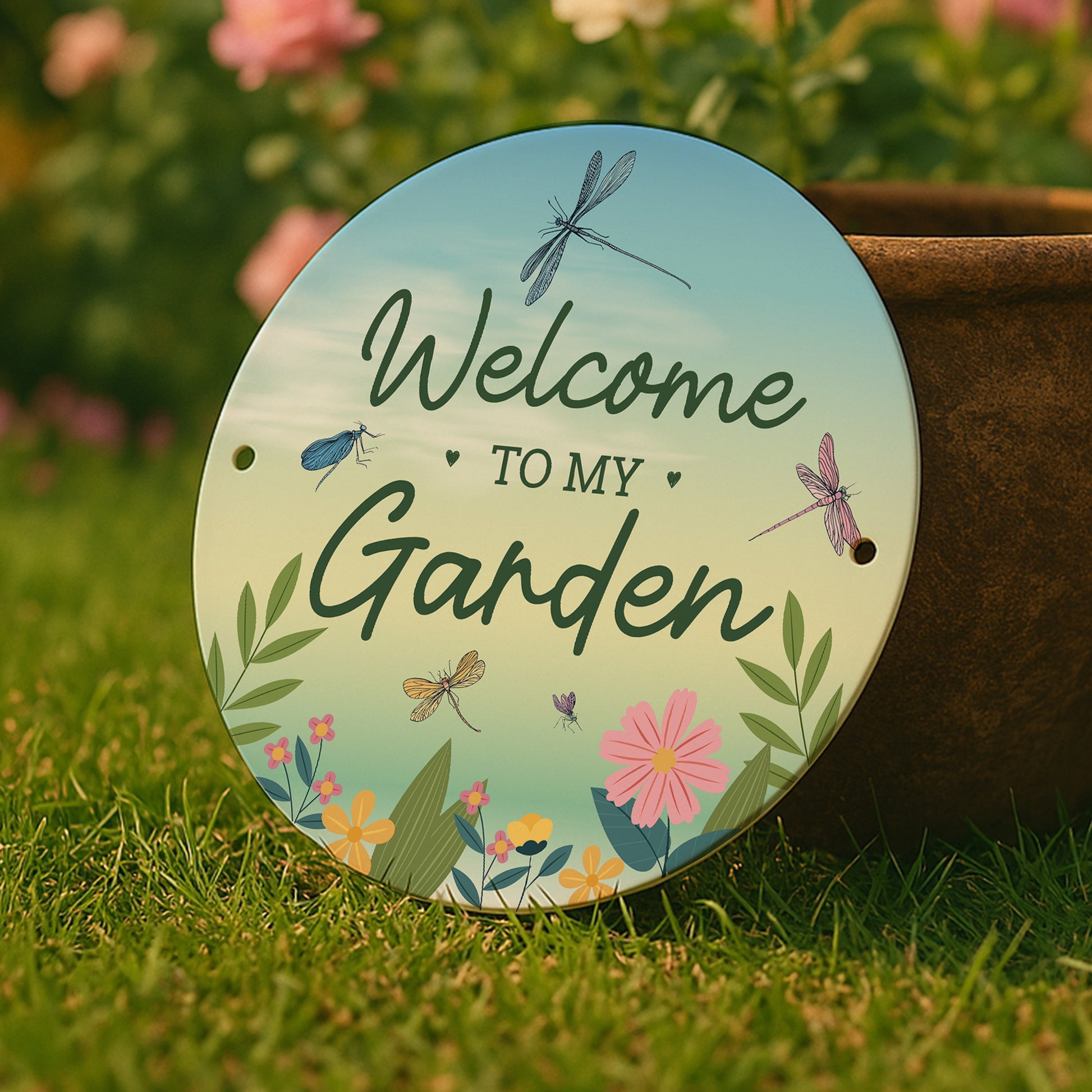 Welcome To My Garden Sign For Outside Summerhouse Dragonfy