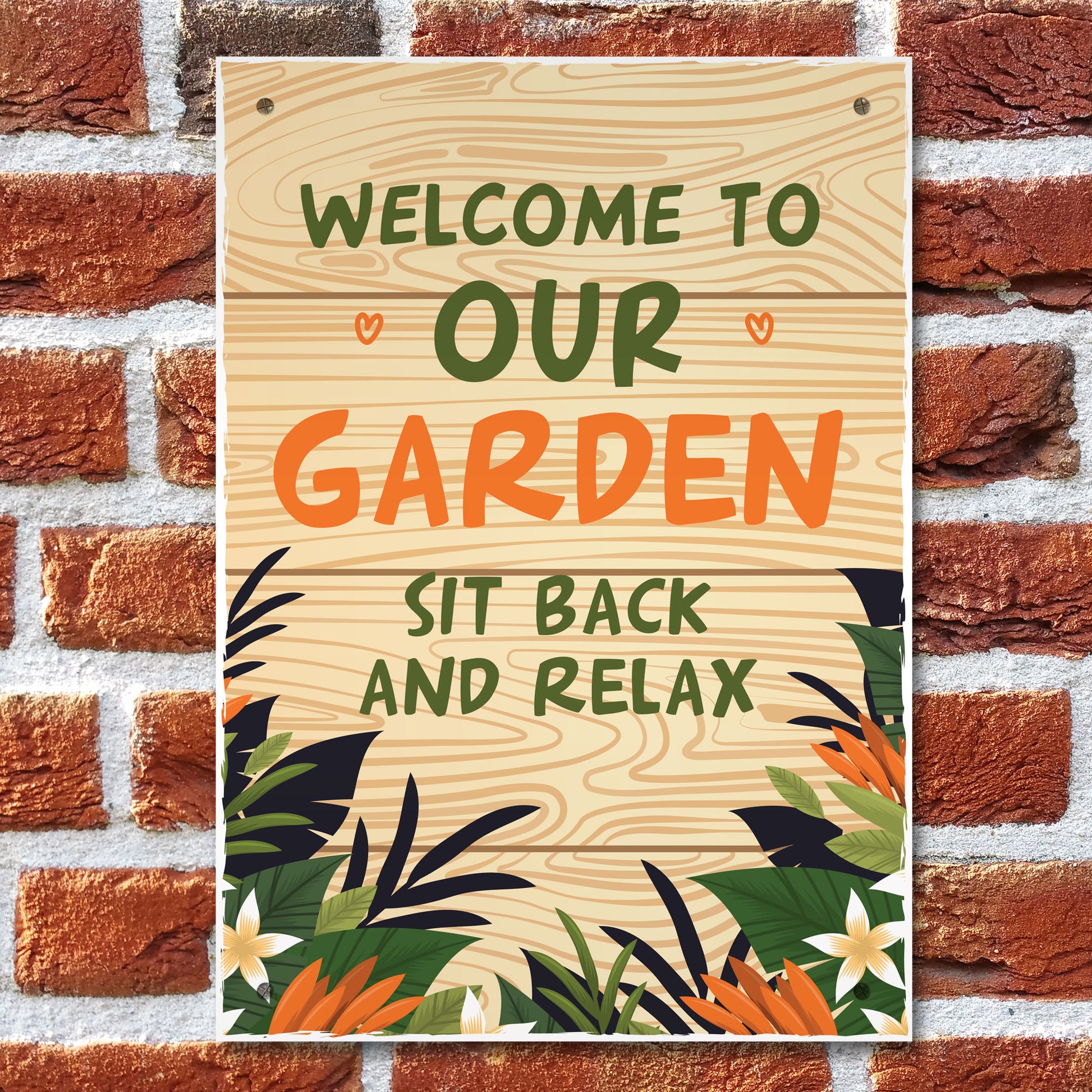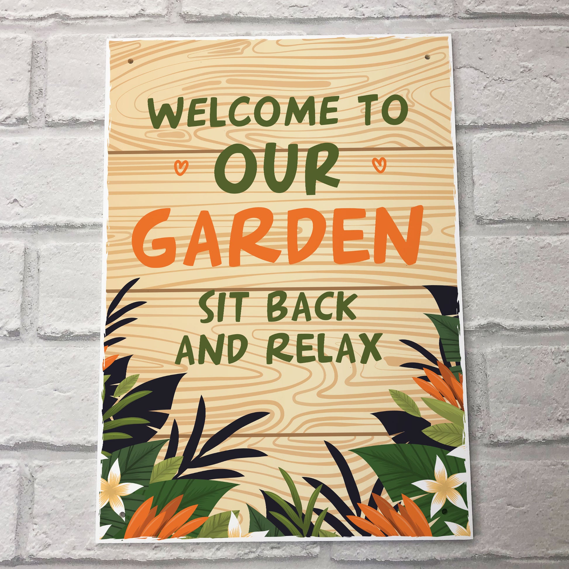 Welcome To Our Garden Sign A4 Hanging Wall Door Plaque Shed Sign