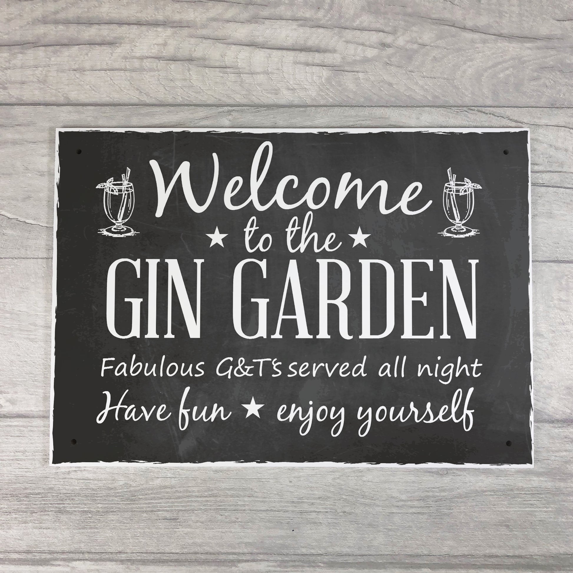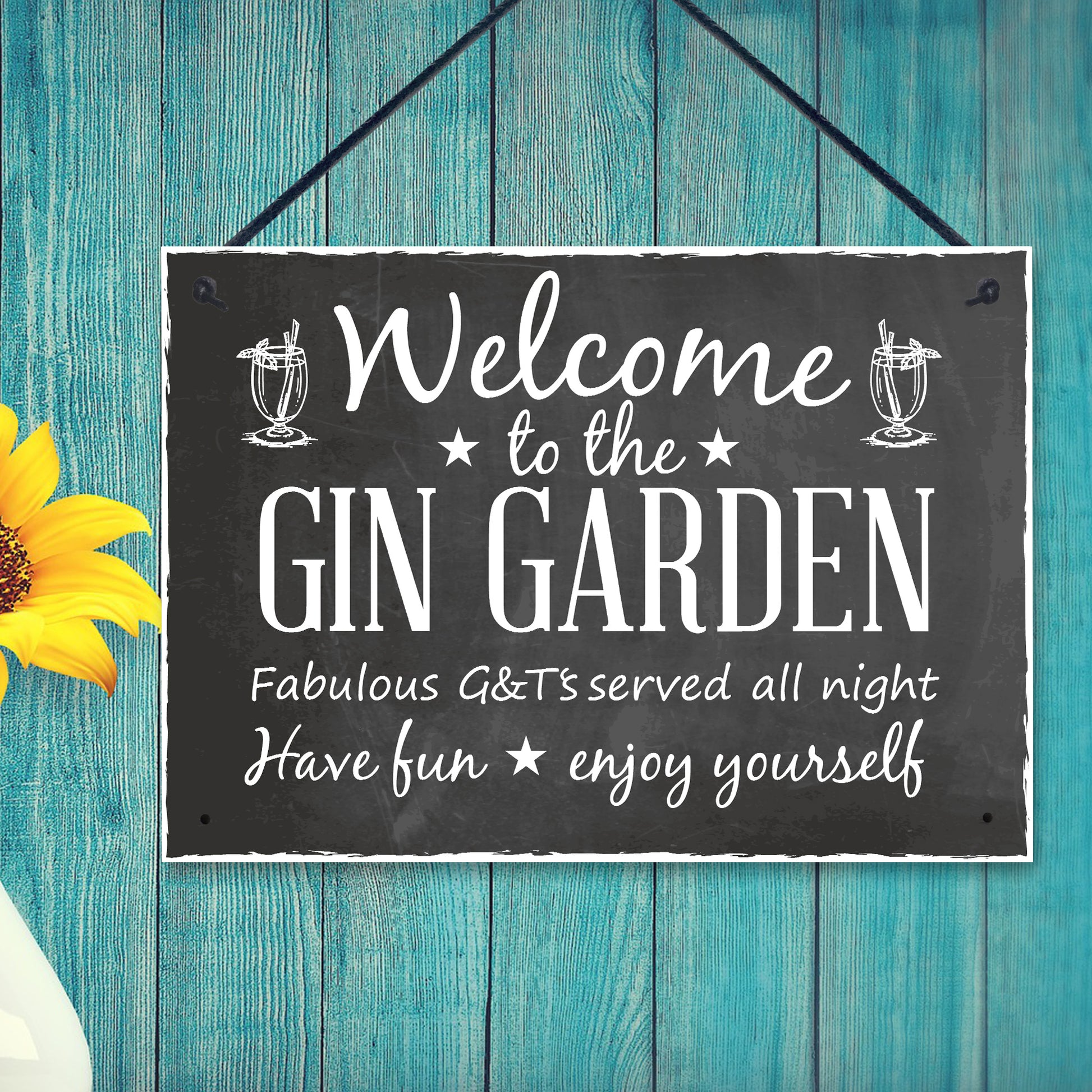 Welcome To The Gin Garden Hanging Alcohol Wall Sign Garden Sign