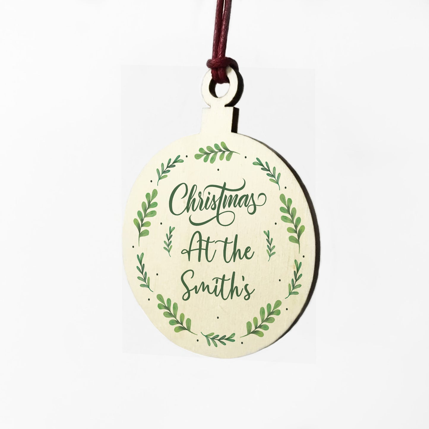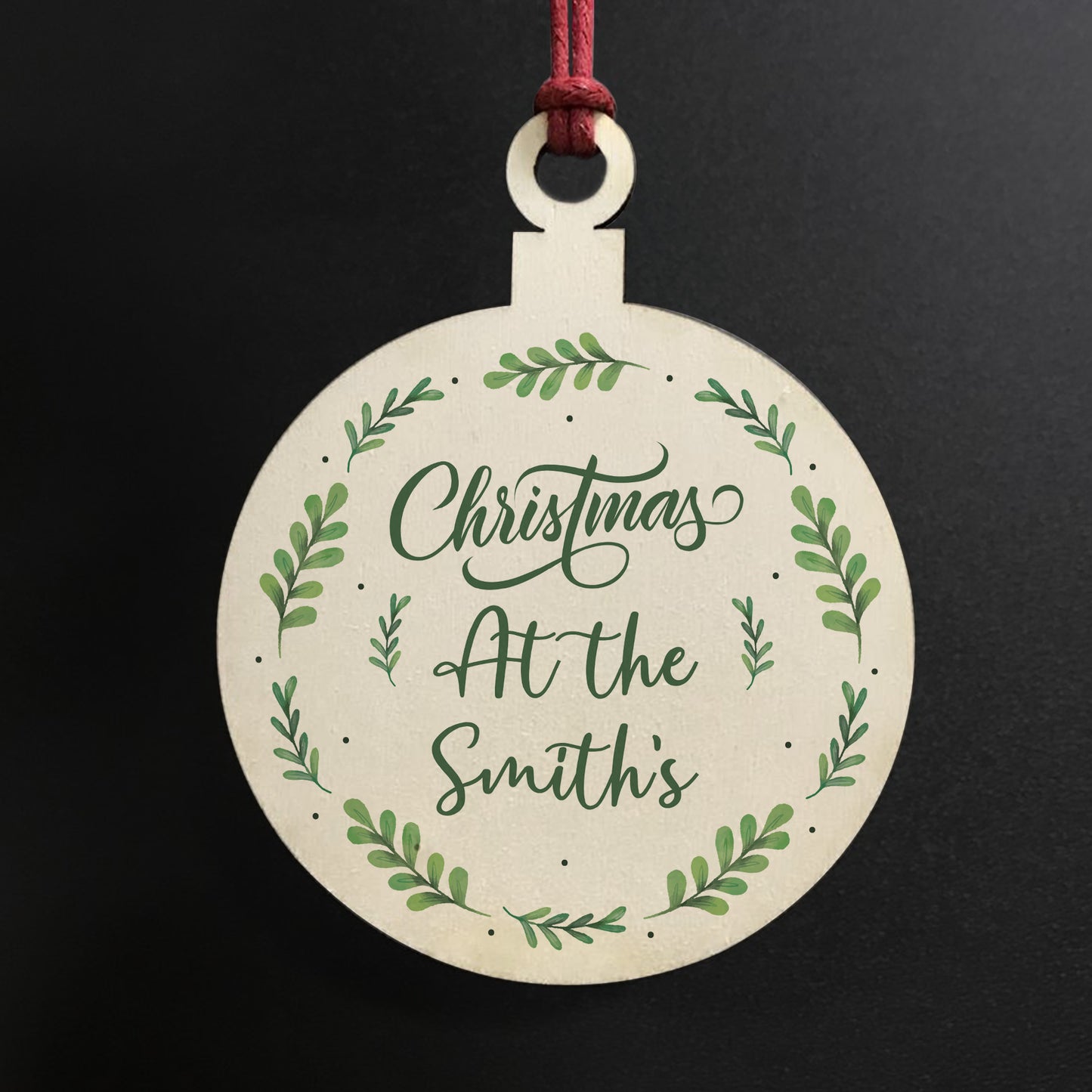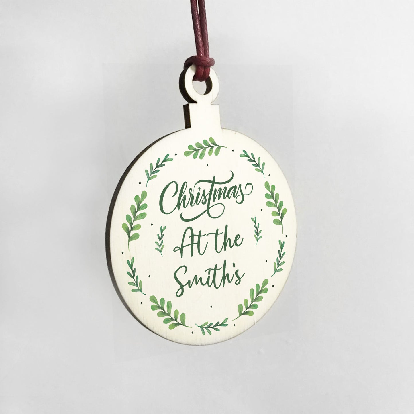Xmas At The ANY NAME PERSONALISED Wood Bauble Tree Decor